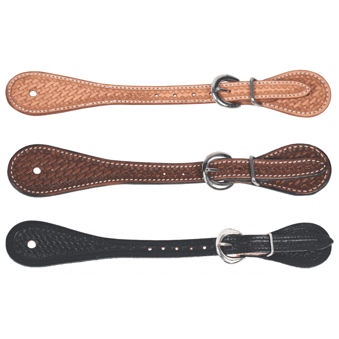 Prof. Choice Sagebrush Basketweave Spur Straps til Women’s/Youth med basketweave tooling og nickel plated buckles. Klassiske western sporeremme i Black, Chestnut og Natural.
