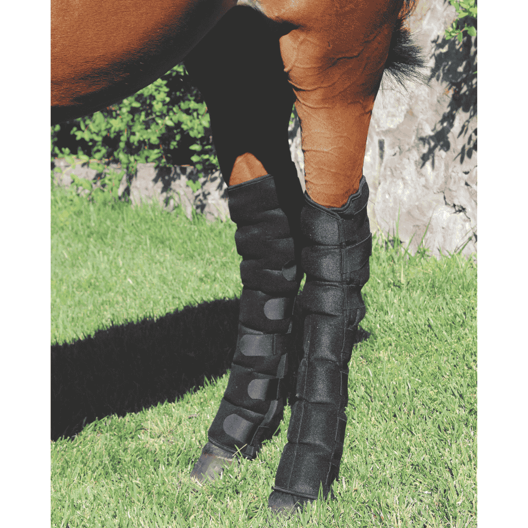 Fuldlængde ice boots til heste, der giver effektiv kuldebehandling fra knæ eller hase og ned med fleksibel pasform og langvarig komfort.