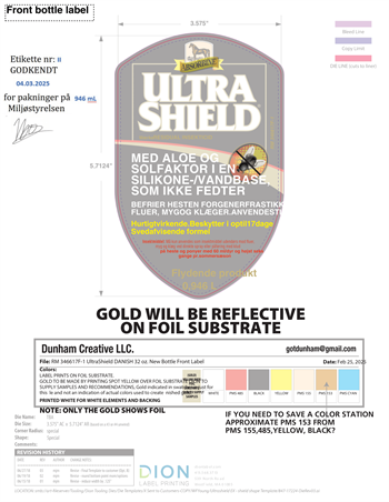• Bemærk, at Ultrashield Black kun må benyttes til heste, der er taget ud af konsum.