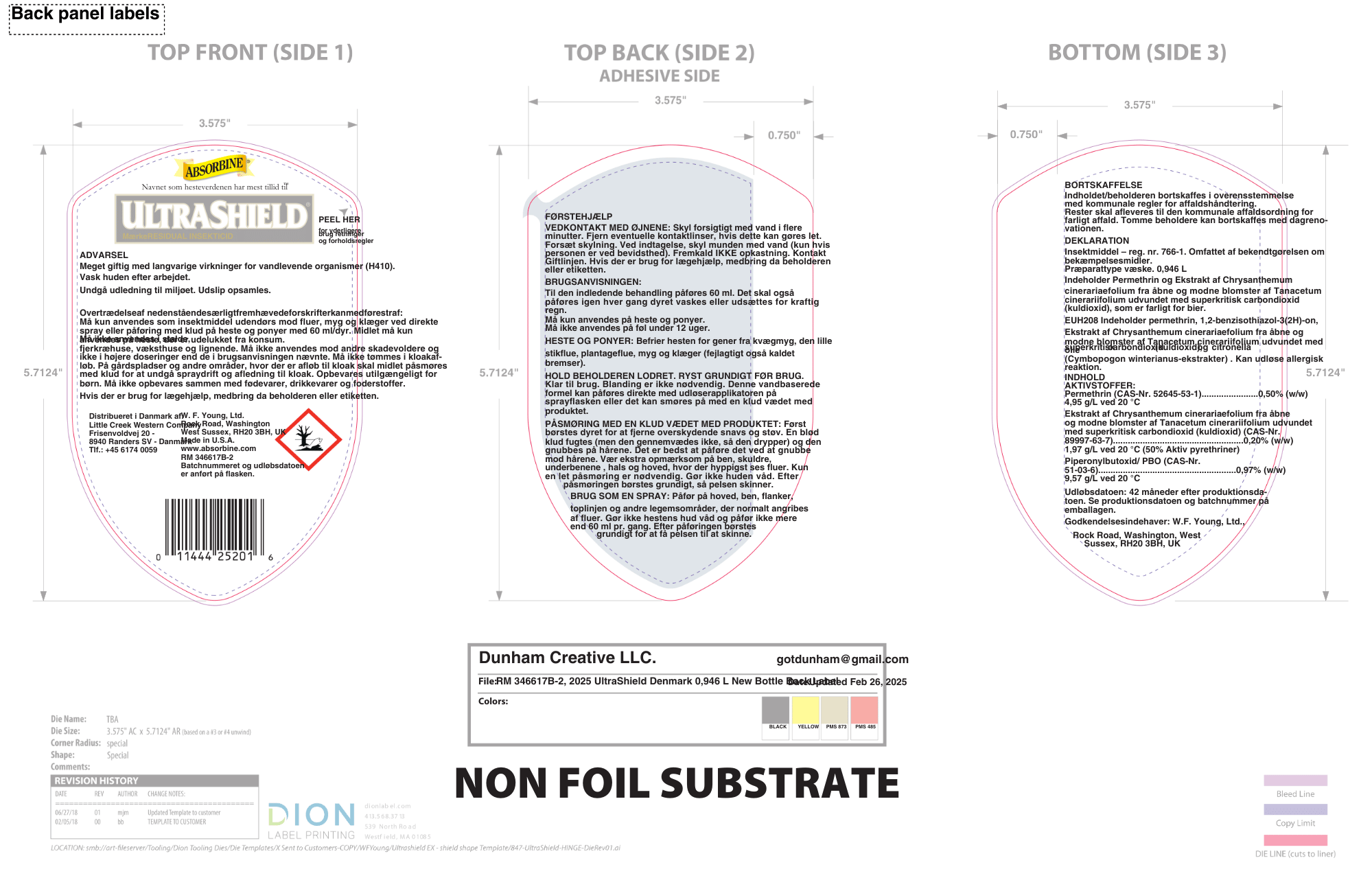 Da Absorbine Ultrashield indeholder biocider skal det anvendes på forsvarlig vis. Læs altid mærkningen og produktoplysningerne før anvendelse: label kan downloades her.