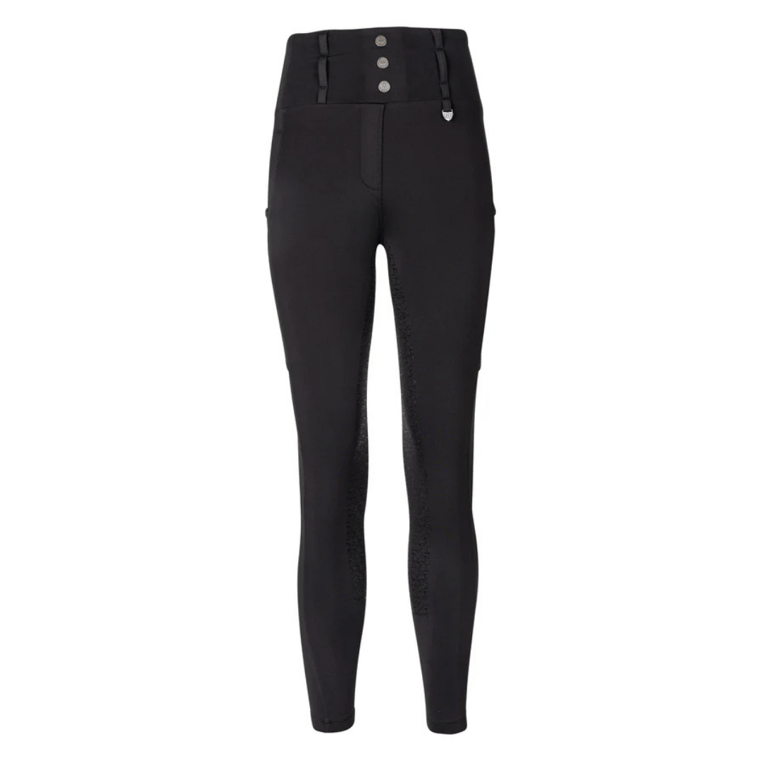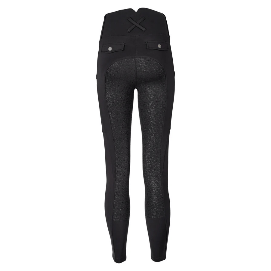 Den høje linning har falske knapper og bæltestropper samt et Woof Wear vedhæng i gun metal-finish. Store telefonlommer er færdiggjort med diskrete prægede logoer. Flydende linjer giver en flatterende silhuet i behageligt 4-vejs stretchstof for at give en perfekt pasform og fremragende præstation i sadlen.