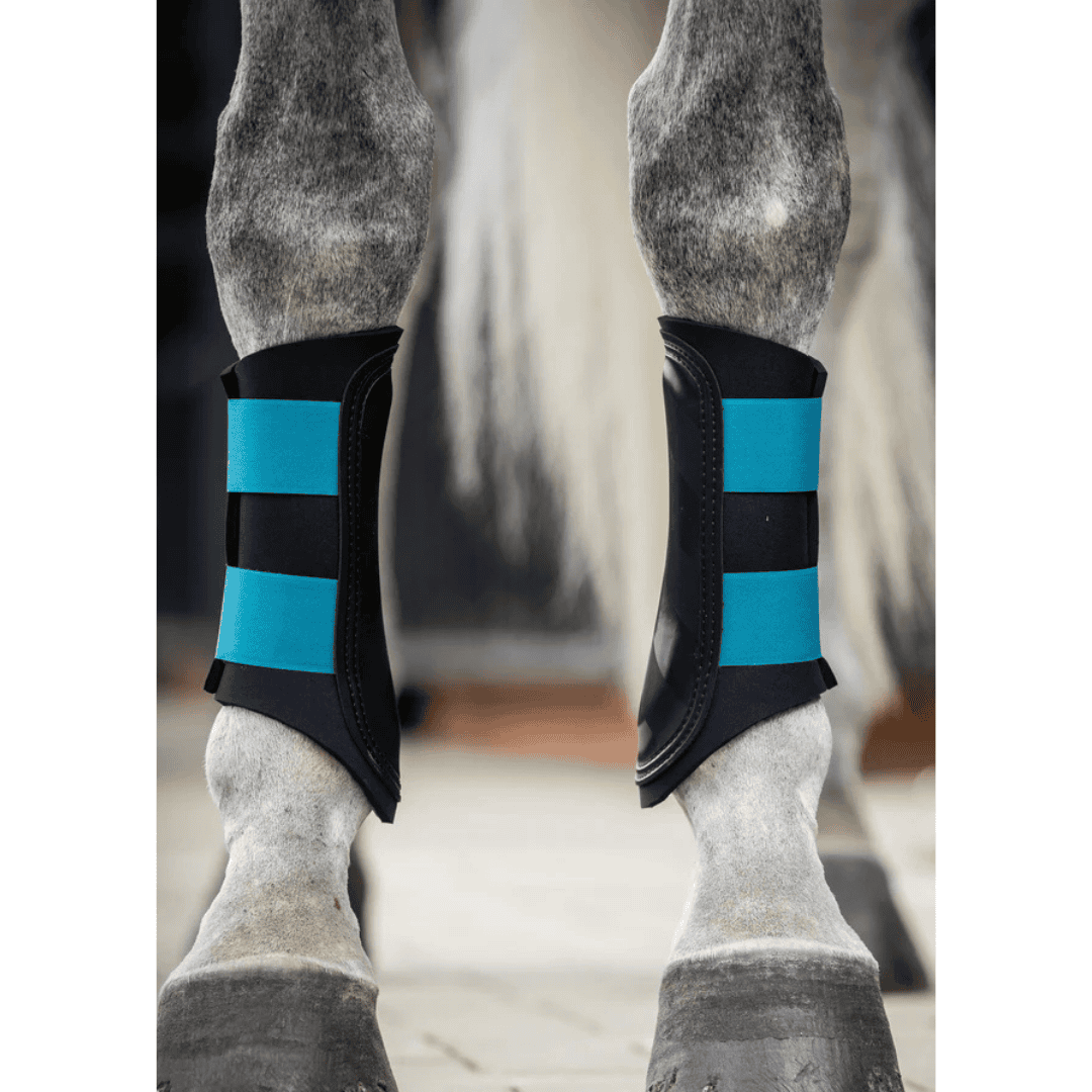 Opdateret brushing boot i Ocean med forstærket PU/vinyl-slagplade, 7 mm neopren og Secure‑Grip lukning. Åndbar, lav vandoptagelse og egnet til for- og bagben.