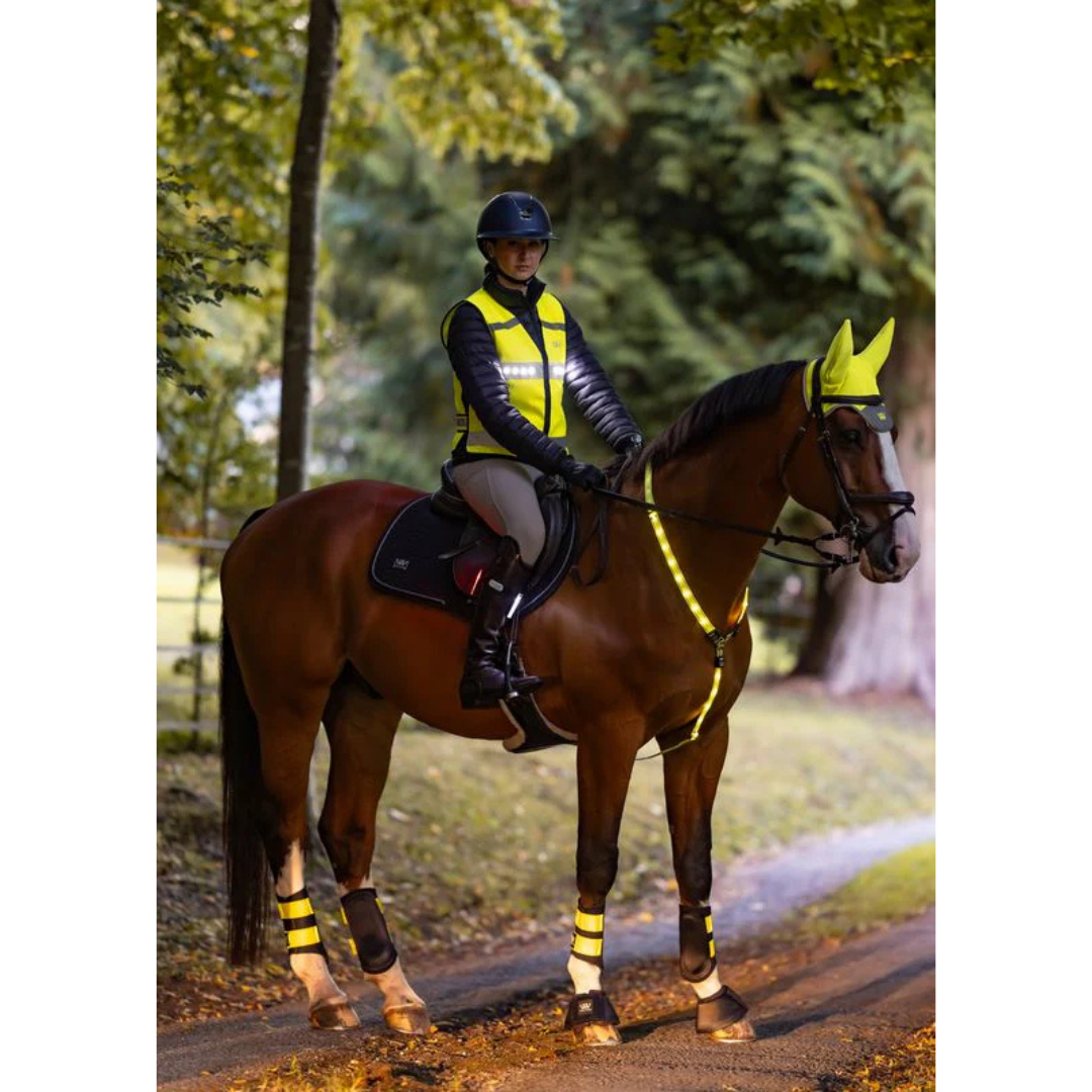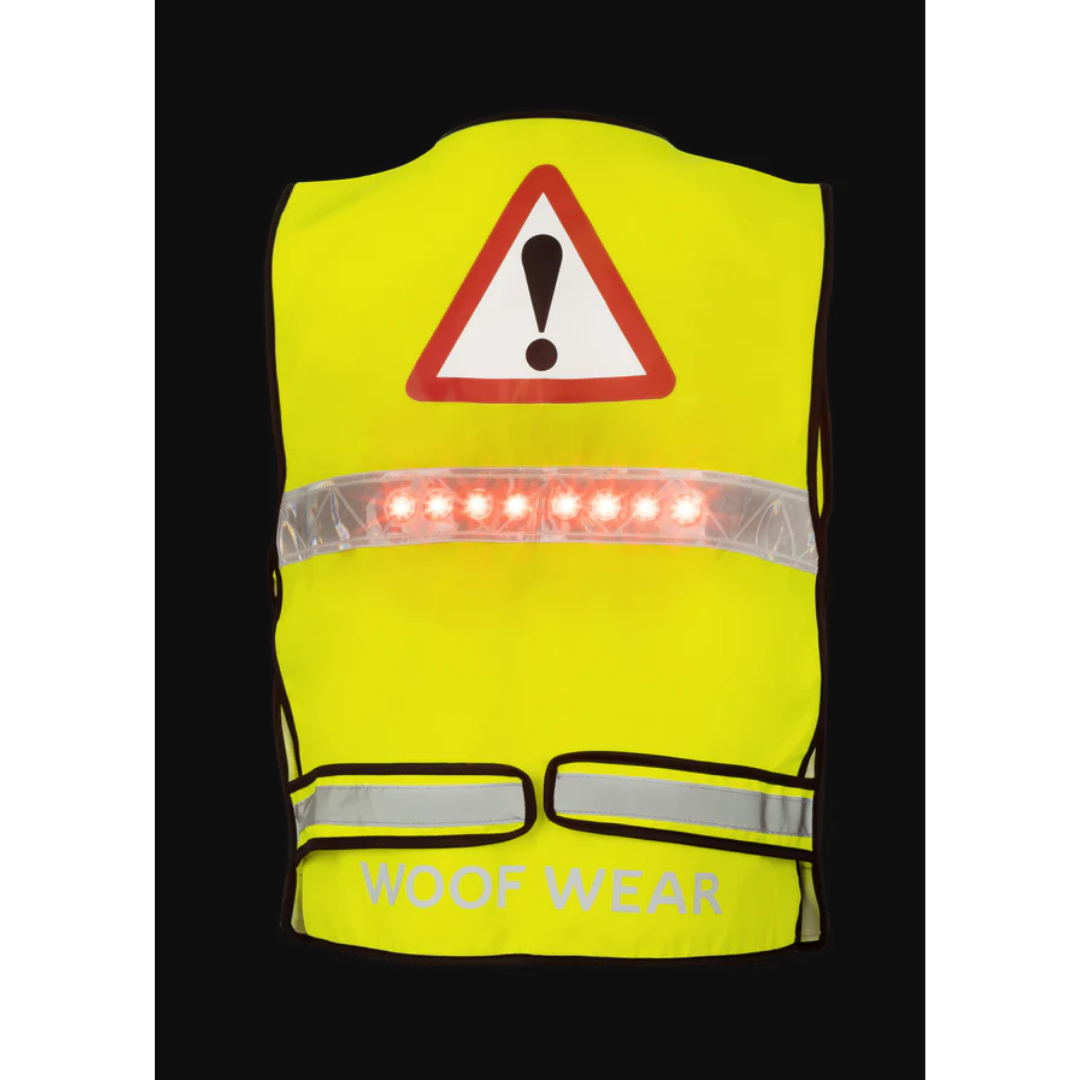 Bevæg dig sikkert gennem skumring, mørke og vinterdage med Woof Wears Hi Vis Riding Vest i gul – en LED‑forstærket refleksvest udviklet specifikt til ryttere. Vesten kombinerer hi‑vis tekstil, brede refleksbånd og aktiv belysning for at skabe en tydelig 360° signatur, som hjælper bilister med at opdage dig tidligere. Trods teknologien er pasformen let og fleksibel og kan justeres til alt fra tynde træningstrøjer til tykke vinterjakker.